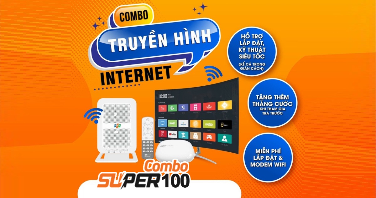 Khách hàng đăng ký gói COMBO 2 trong 1 gồm Internet WiFi 6 + Truyền hình FPT Play sẽ được FPT trang bị miễn phí 01 Modem WiFi 6 hiện đại và 01 Box FPT Play thông minh hỗ trợ điều khiển bằng giọng nói, tích hợp hơn 130 kênh truyền hình đặc sắc.